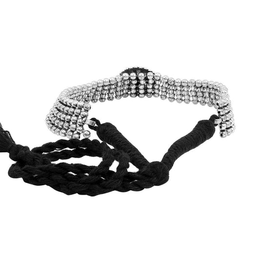 Oxidised Silver Threaded Jewelry Beads Traditional Choker Necklace Set for Women and Girls, silver oxidised, medium (YCTJNS-48OXDFLWR-SL)