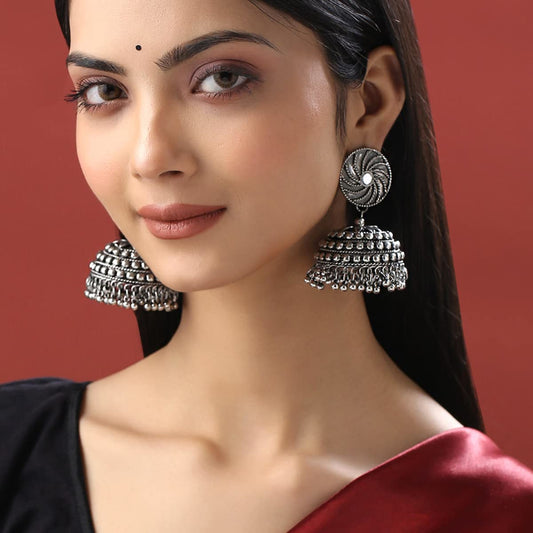Earrings for Women and Girls Traditional Silver Oxidised Jhumka Earrings | German Silver Big Jhumki Earrings | Birthday Gift For girls and women Anniversary Gift for Wife