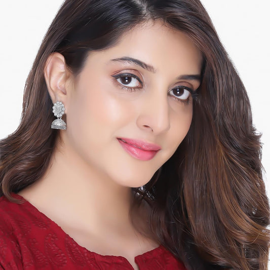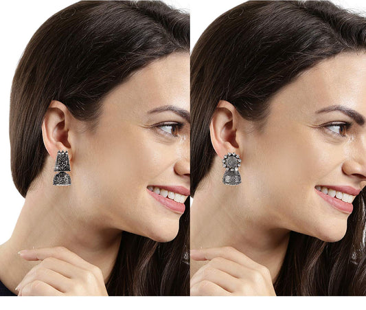 Earrings for Women and Girls | Traditional Silver Oxidised Jhumka | German Silver Earring Set | Floral Jhumki Earrings Combo | Birthday Gift For Girls and Women Anniversary Gift for Wife