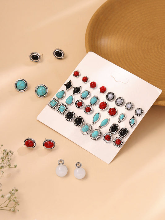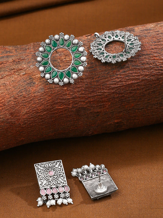 Stud Earrings for Women | Fashion Multicolor Earrings for Girls Combo of 2 Pairs Studs Earrings Set | Oxidised Silver Women Earrings | Birthday Gift For Girls Anniversary Gift for Wife