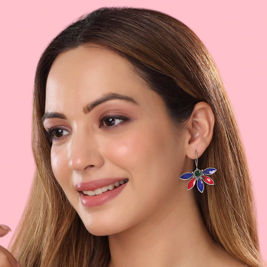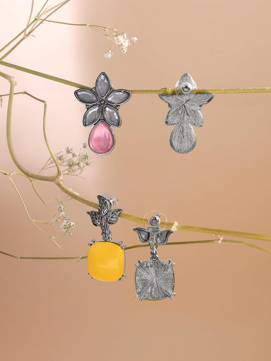 Multicolor Drop Earrings For Women | Combo of 2 Pairs Fashion Drop Earrings Set | Floral Shaped Oxidised Silver Earrings For Gifting | Birthday Gift for Girls Anniversary Gift for Women