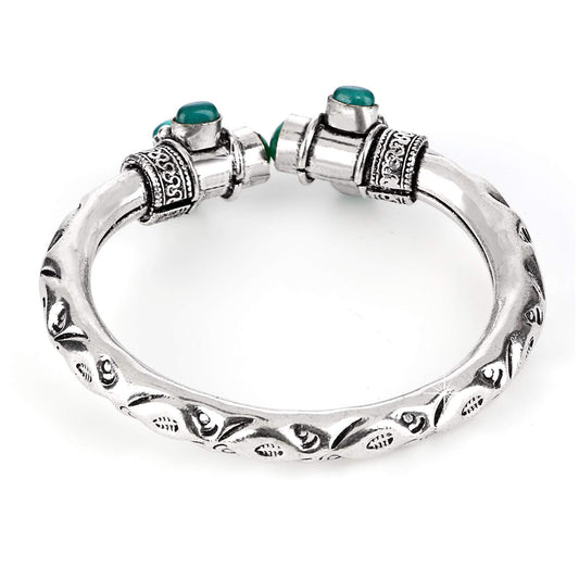 Latest Trend Tribal Stone Oxidised Silver Bracelet Bangle Kadaa for Women (Green)