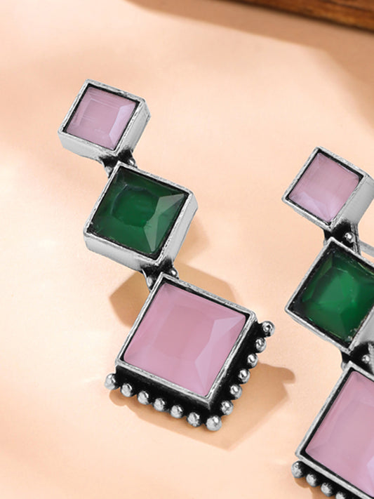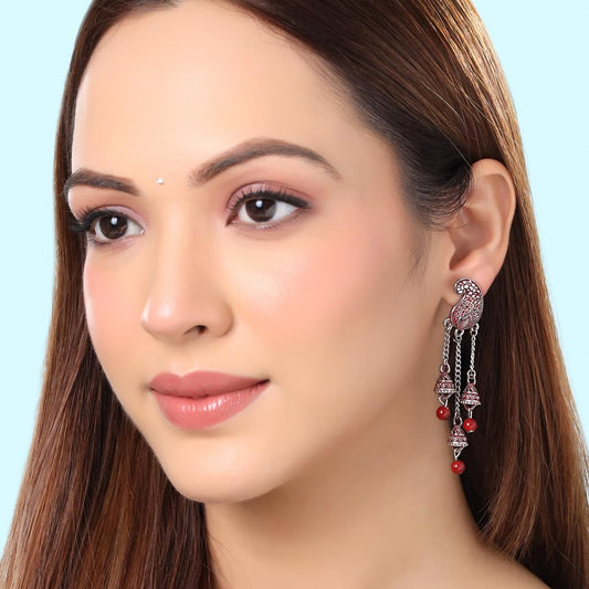 Silver Oxidised Drop Earrings For Women | Multicolor Fashion Earrings | Oxidised Silver Plated Vintage Drop Earrings For Girls | Chic Reverie | Birthday Anniversary Gift for Girls Women