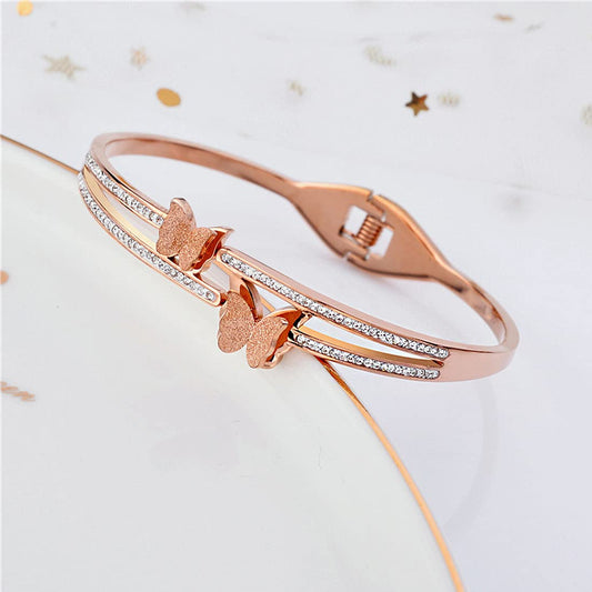 Rosegold Bracelet for Women Elegant Dual Butterfly Stainless Steel Rose Gold Plated Kadaa Bracelet for Women and Girls Valentine Gift for Girls