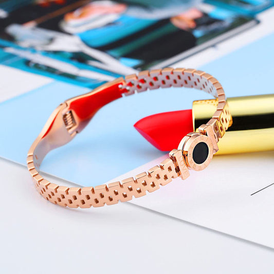 Bracelet for Women Stainless Steel Rose Gold Plated Statement Style Black Circle Design Kadaa Bracelet for Women and Girls.