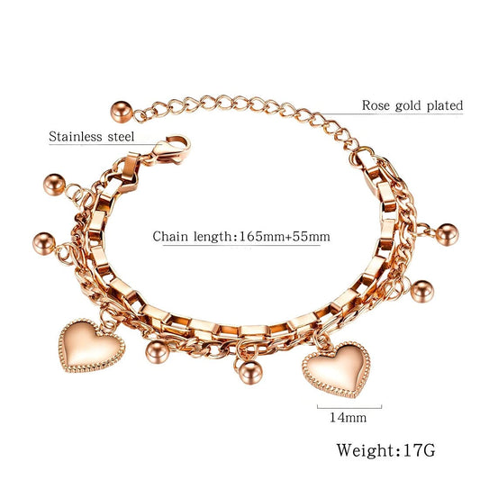 Bracelet for Women and Girls Rose Gold Bracelets for Women and Girls | Western Style Stainless Steel Heart Charm Chain Bracelet | Birthday Gift For girls and women Anniversary Gift for Wife