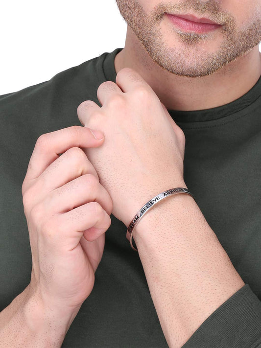 Bracelet for Unisex Dream Believe Achieve Inspirational Gifts Message Engraved Mirror Polish Stainless Steel Unisex Karma Band Kada Bracelet for Men and Women