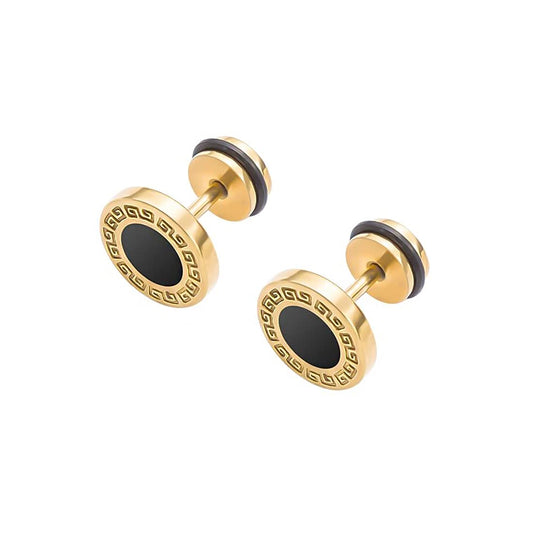 Earrings for Men and Boys Fashion Golden Studs for Men | Gold Toned Black Studs | Stainless Steel Stud Earrings | Birthday Gift for Men and Boys Anniversary Gift for Husband