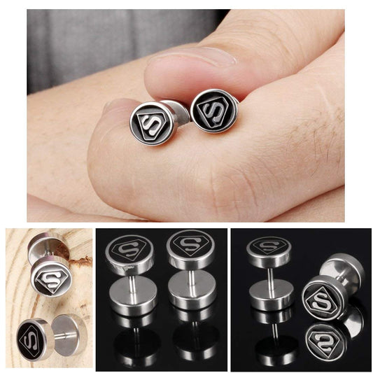 Earrings for Men and Boys Fashion Silver Studs for Men | Silver Toned Superman Studs | Stainless Steel stud Earrings | Birthday Gift for Men and Boys Anniversary Gift for Husband
