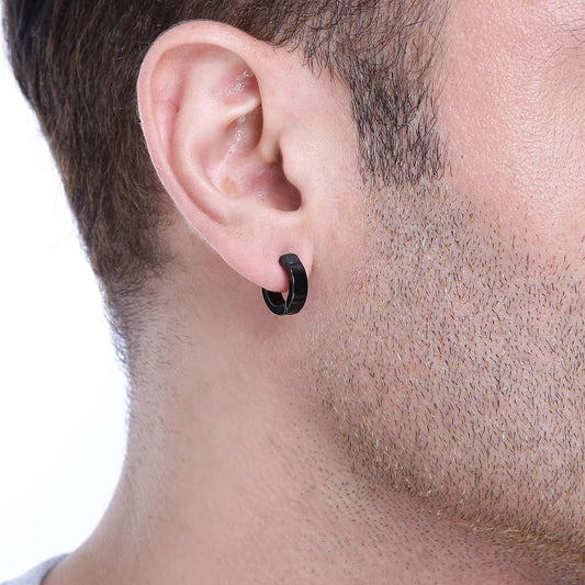 Earrings for Men and Boys | 2 Pair Combo of Black Hoop Earring and Black Studs for Men | Birthday Gift for Men and Boys Anniversary Gift for Husband