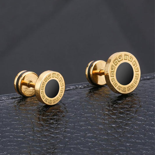 Earrings for Men and Boys Fashion Golden Studs for Men | Gold Toned Black Studs | Stainless Steel Stud Earrings | Birthday Gift for Men and Boys Anniversary Gift for Husband