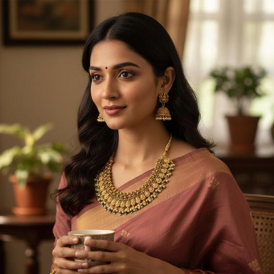 Temple Jewellery Set for Women: Traditional Gold-Plated Necklace | One Size | Adjustable | Golden