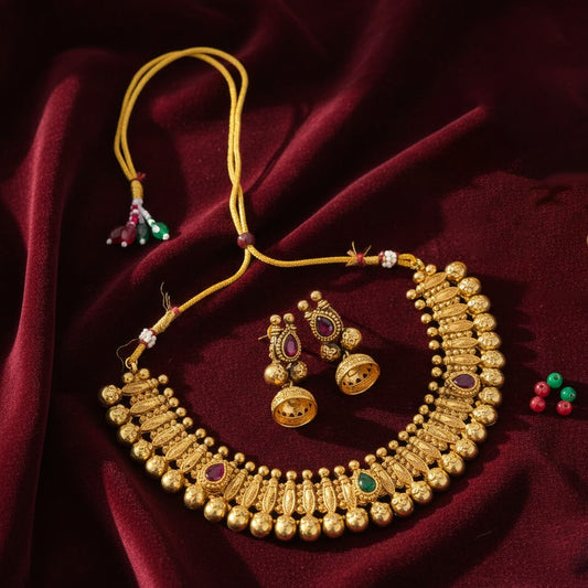 Temple Jewellery Set: Traditional Gold Plated Choker & Earrings | Adjustable Fit | Gold