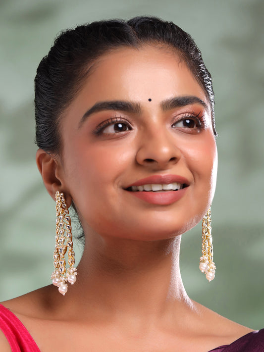 Long Dangler Pearl Earrings for Women | Traditional Kundan Earrings for Girls | Ethnic Gold Plated Women Earrings | Eternal Elegance | Birthday Gift for Girls Anniversary Gift for Wife