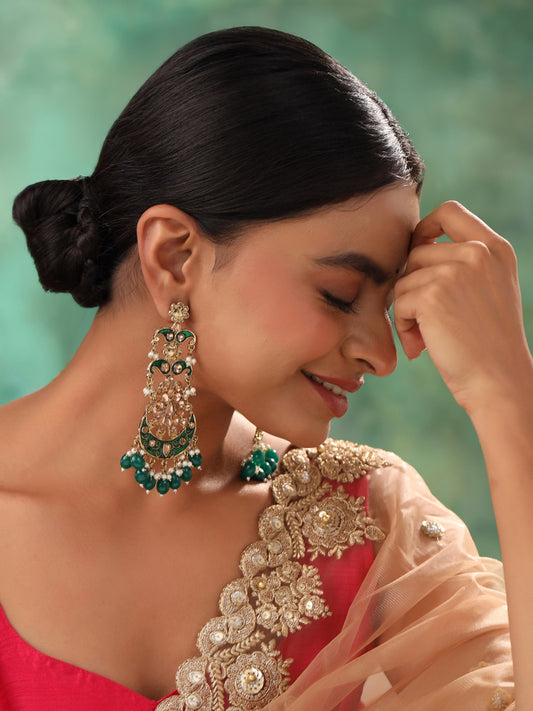 Danglers Earrings for Women Gold Plated Green Meenakari Traditional Kundan Floral Long Chandbali Earrings for Women and Girls