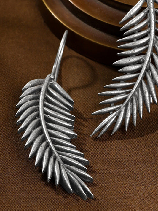 Earrings for Women Girls Silver Oxidised Long Dangler Earrings | Traditional Leafy Shaped Silver Oxidised Plated Danglers Earrings | Birthday Gift For Girls Anniversary Gift for Wife