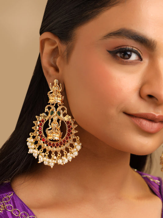Dangler Earrings: Traditional Gold Plated Chandbali with Pearl | One Size | Gold