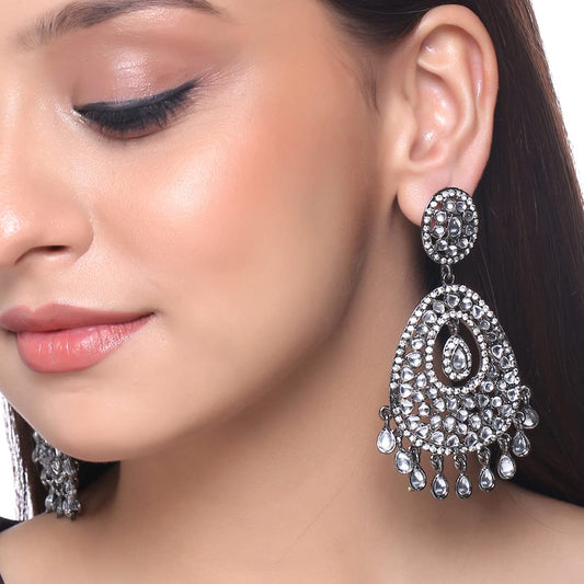 Danglers Earrings for Women Kundan Earrings Ethnic Black Gun Plated Traditional White Stones Dangler Earrings for Women and Girls.