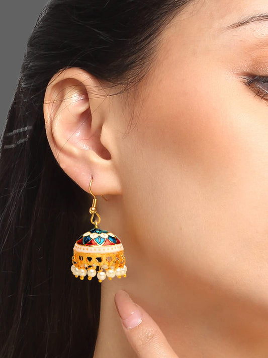 Meenakari Jhumka Earrings: Multicolor Traditional Gold Plated | 5.4cm