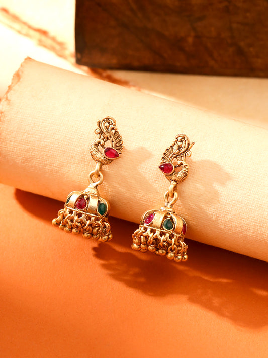 Jhumka Earrings for Women | Traditional Gold Plated Small Jhumki Earrings for Girls | Golden Peacock Shaped Jhumkas Earrings | Ethnic Accessories for Women | Birthday Anniversary Gift