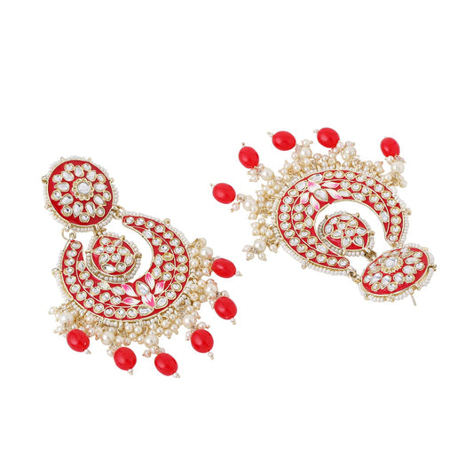 Earrings for Women and Girls Traditional Meenakari Chandbali | Gold Toned Red Meenakari Chandbali Earrings | Birthday Gift for girls and women Anniversary Gift for Wife