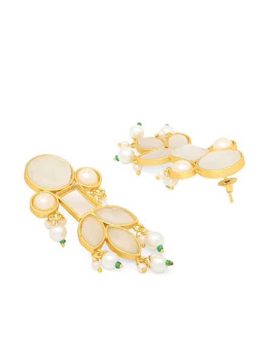 Danglers Earrings for Women Traditional Gold Plated Studded White Stone Ethnic Dangler Drop Earrings for Women and Girls
