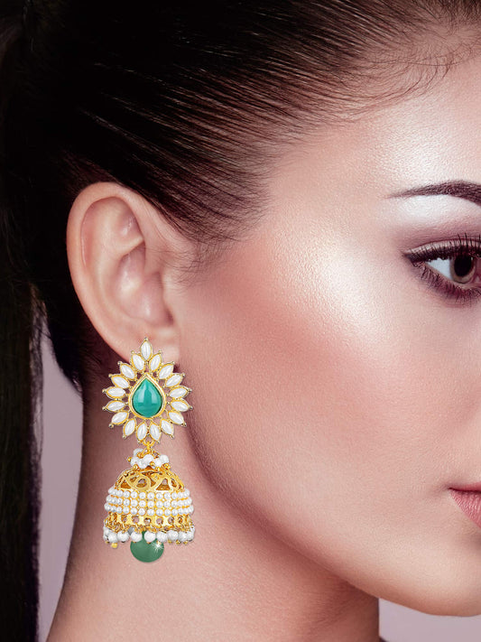 Bollywood Celebrity Party Wear Traditional Pearl Moti Jhumka/Jhumki Earrings for Women and Girls (Green)
