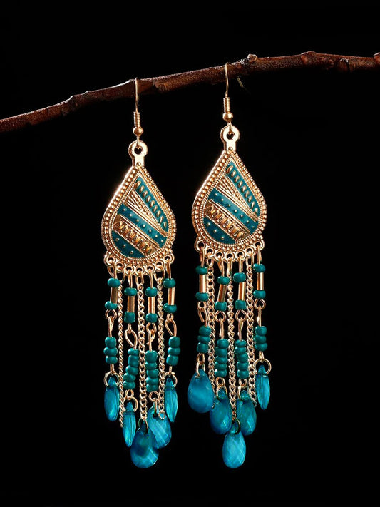 Earrings for Women and Girls Green Dangler Earrings | Gold Plated Long Beaded Tassel Earrings Bohemia Dangler Earrings| Birthday Gift for girls and women Anniversary Gift for Wife