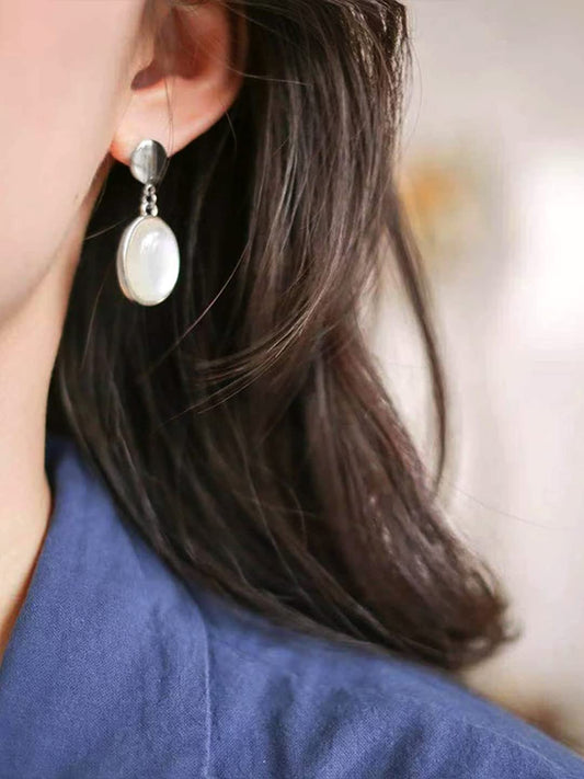 Earrings For Women Silver Tone Clip On Stud With White Stone Round Drop Earrings For Women and Girls