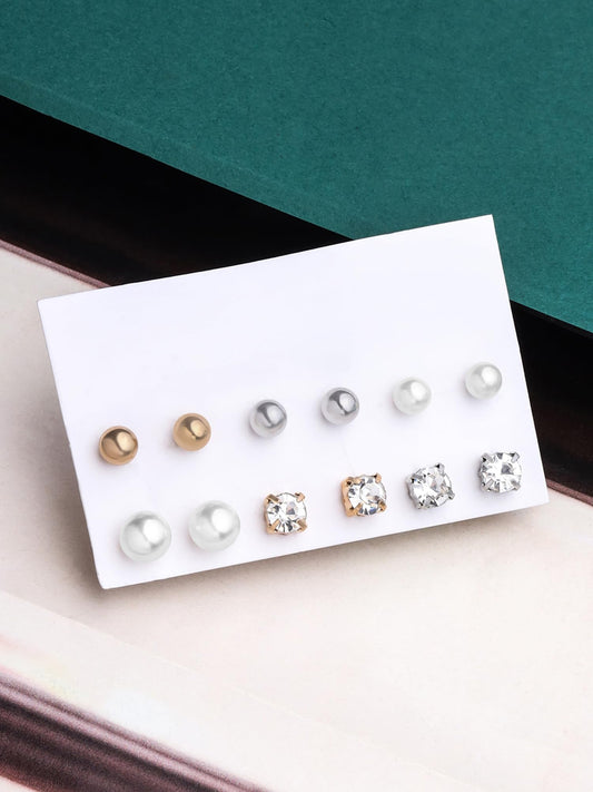 Stud Earrings for Women | Fashion Gold Earrings for Girls Combo Set Studs Earrings Set | Circle Shaped Women Earrings | Birthday Anniversary Gift For Girls Wife (Pearl Stud)