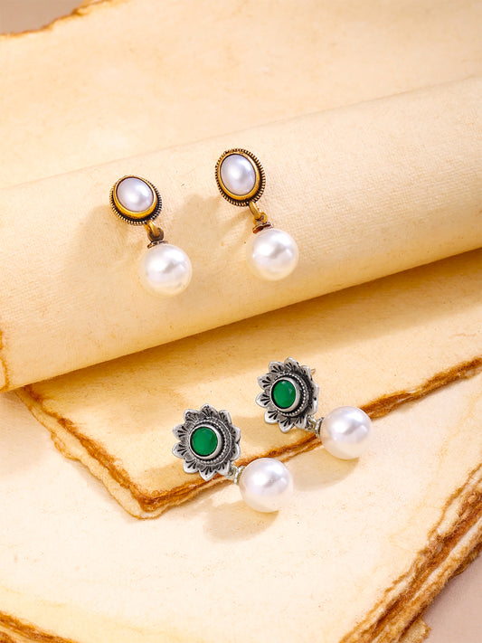 Combo: 2 Pairs of Pearl Drop Earrings for Women | Elegant Design | Lightweight Alloy | Multicolor