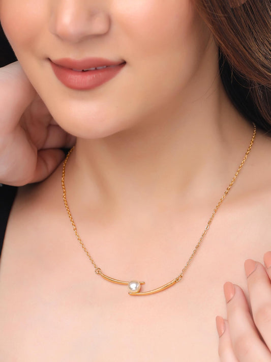 Gold Plated Pearl Chain Necklace for Women - Elegant & Stylish | Adjustable 46 cm | Gift-Ready