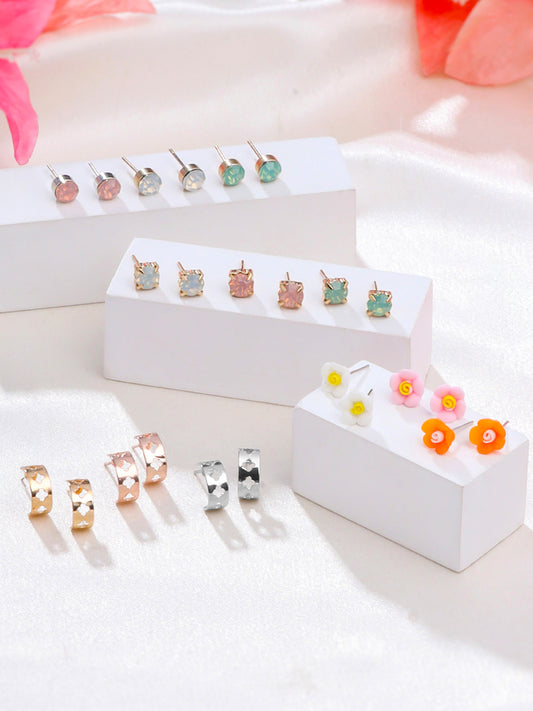 Combo of 12 Pairs: Multicolor Stud Earrings for Women | Rhodium-Plated, Lightweight | One Size | Multicolor