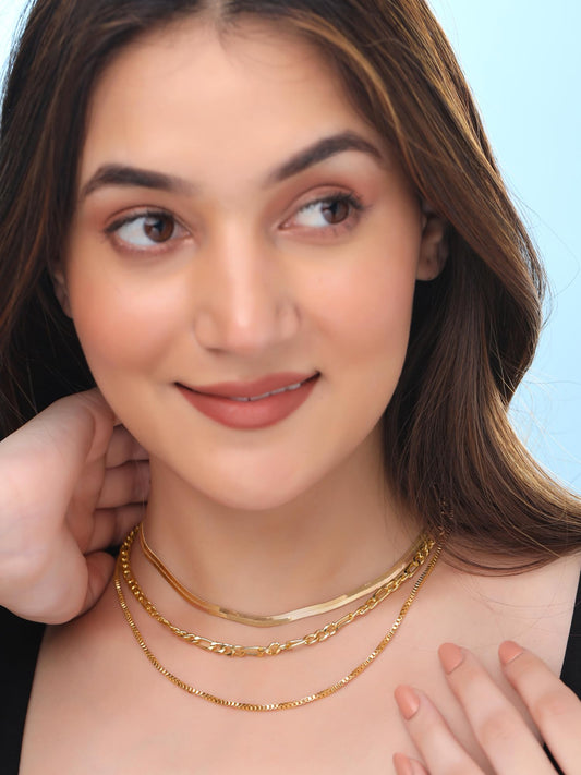 Multi Layered Choker Necklace: Gold Plated Chain with Elegant Design | Adjustable | 40-50 cm | Gold