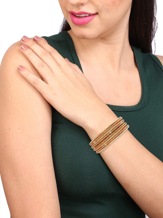 Antique Classic Look Studded Crystal Beads Gold Plated 4 Pcs Traditional Bangles Set for Women and Girl's (2.6)