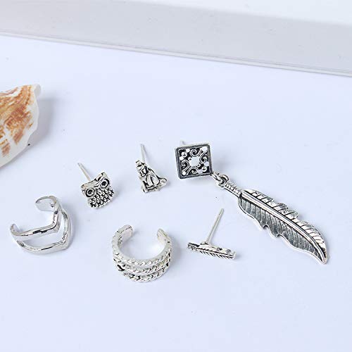 Trandy Combo Of 7 Pcs Antique Oxidized Silver Bohemian Mismatch Fashion Ear Stud Earring