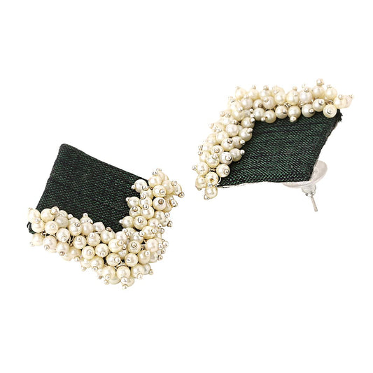 Earrings for Women and Girls Green Studs | Green Woven Wrapped Beads Studded Stud Earrings | Birthday Gift for girls and women Anniversary Gift for Wife