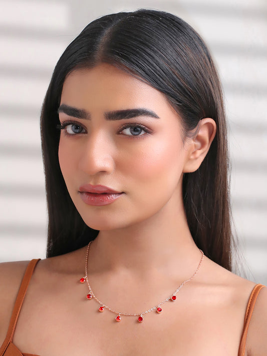 Classic One Size: Women's Rose Gold Chain Necklace with Red Crystals | Elegant Gift