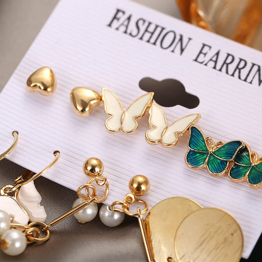 Earrings Set for Women Gold Plated Butterfly Design Combo of 6 Pairs Stud Danglers Earrings for Women and Girls