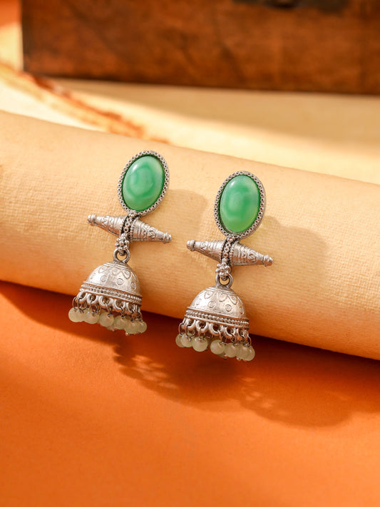 Silver Oxidised Jhumka Earrings: Traditional Plated Beauty | 4.5cm x 2.2cm | Lightweight