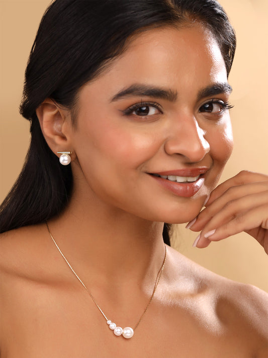 Elegant Pearl Jewellery Set: Necklace & Earrings | 25cm Chain | Gold Plated | White Pearls