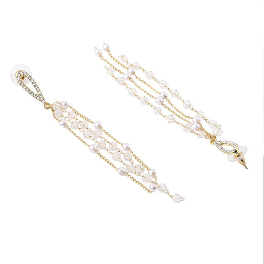 Earrings For Women Gold Tone Pearl Studded Teardrop Shape Stud With White Chandelier Tassel Dangler Earrings For Women and Girls