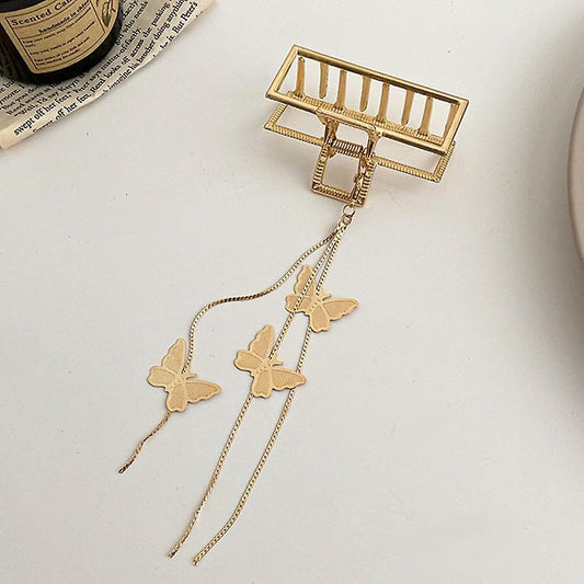 Hair Clip for Women Gold Toned Cluthers Long Hair Claw Clip with Hanging Butterfly Charm Hair Clutch for Women and Girls