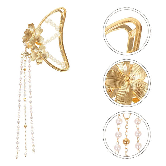 Hair Clip For Women Gold Toned Cluthers Hair Claw Clip With Linear Chain Attached Hair Clutch For Women and Girls