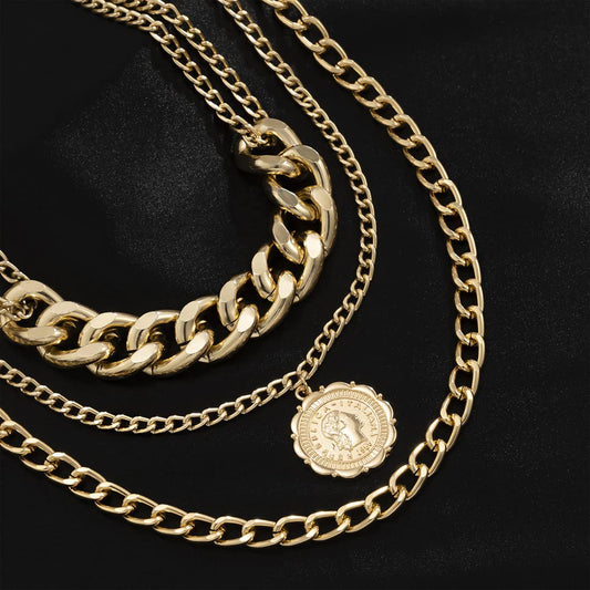 Layered Choker Necklace for Women Multi Color Plated Thick Chain Multi Layer Chain Choker Necklace for Girls and Women (NK 2)