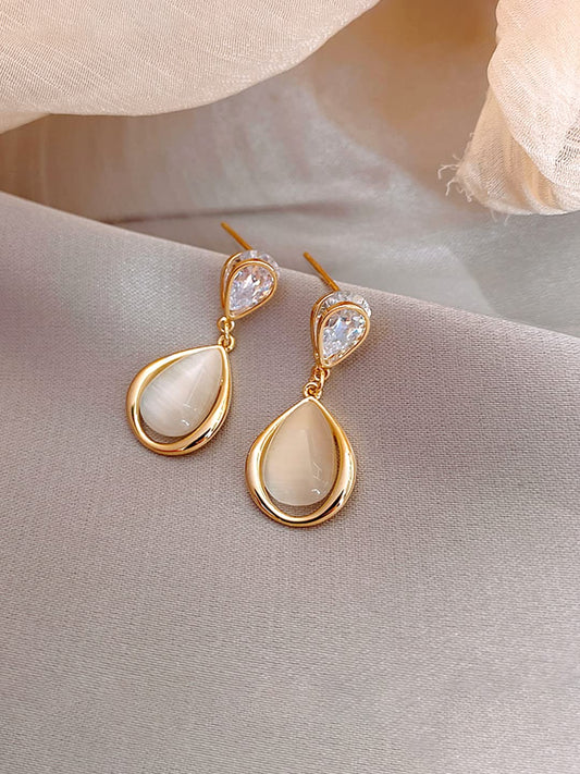 Earrings for Women and Girls Drop Earring for Girls | Gold Plated Opal Studded Tear Drop Designed Drop Earrings | Birthday Gift for girls and women Anniversary Gift for Wife