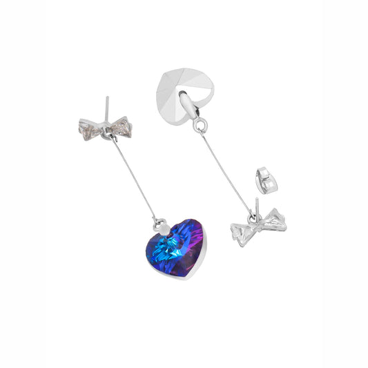 Earrings for Women and Girls Crystal Danglers | Silver Tone Bow Heart Designed Dangler Earrings | Birthday Gift for girls and women Anniversary Gift for Wife