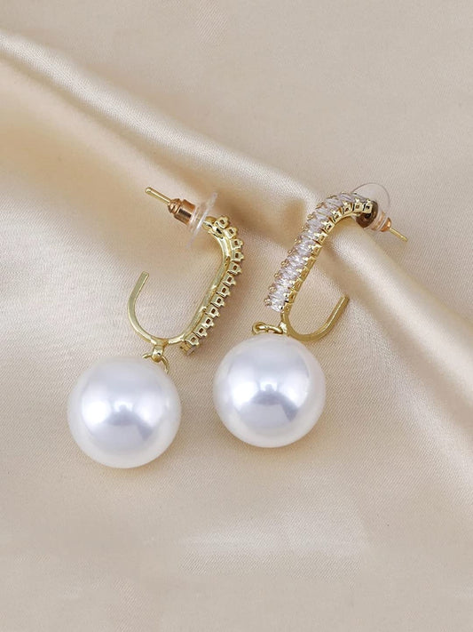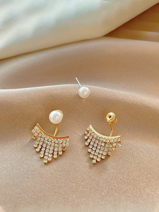 Earrings For Women Gold Toned Pearl Stud Back Drop Crystal Studded Drop Earrings For Women and Girls