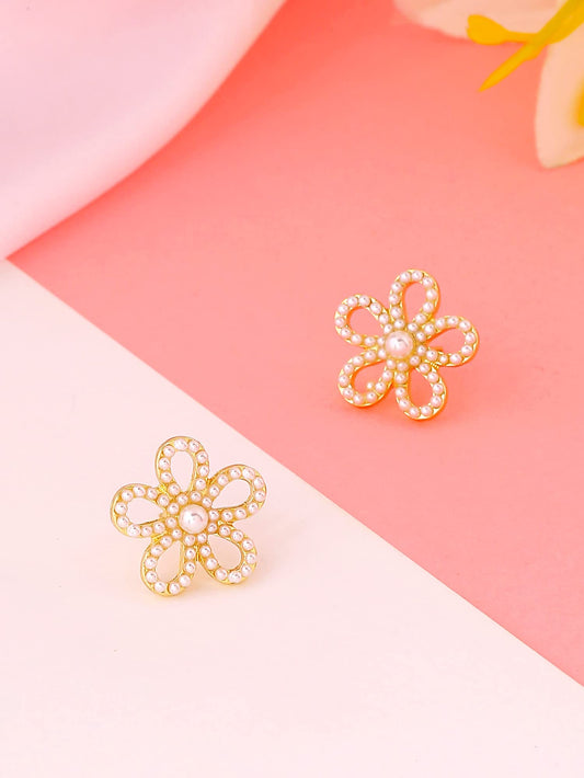Earrings for Women and Girls Studs for Girls | Gold Toned Pearl Studded Floral Stud Earrings | Birthday Gift for girls and women Anniversary Gift for Wife