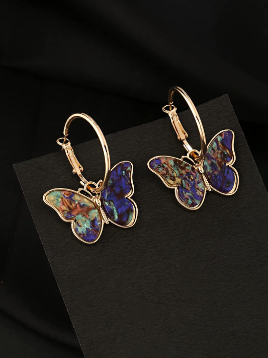 Earrings for Women and Girls Drop Earrings for Girls | Gold Plated Blue Color Butterfly Drop Earrings | Birthday Gift for girls and women Anniversary Gift for Wife